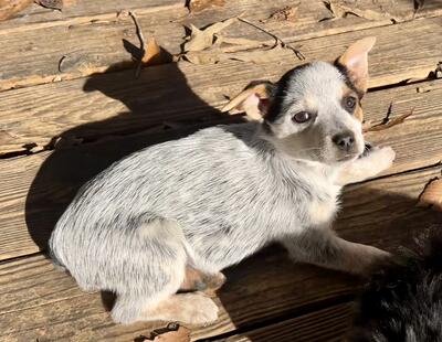 These puppies are half Australian Cattle Dog, 1/4 Chinese Crested, 1/8 Miniature Dachshund and 1/8 T...