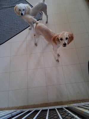 Rehoming both male apricot & female red miniature Poodles, both come with AKC registration papers wi...
