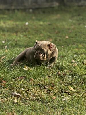 I have a 10 week old chocolate tri XL. American bully male he is our first pick keeper out of the en...