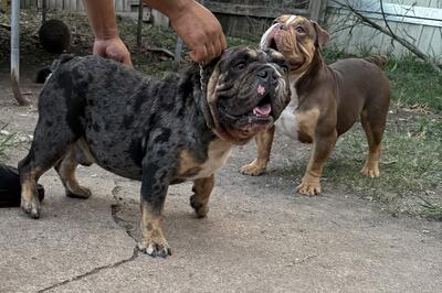 Rehoming 2 year old tri Merle male and 2 year old female chocolate tri English bulldog. Neither are ...