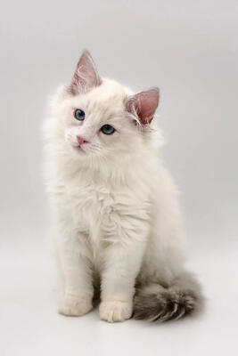 Meet Alfred β a 3-month-old purebred male Ragdoll kitten with a plush coat, piercing blue eyes, an...