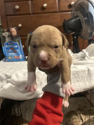 5 week old pitbull puppies that will be ready for their forever home on May 10. 1 boy and 2 girls av...