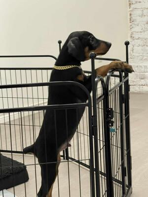 We have a 7 month old black and rust doberman puppy. He's crate and leash trained and hoping to have...