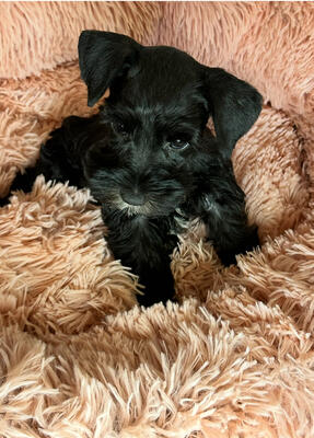 I have a litter of male schnauzer puppies. Docked tail and three rounds of vaccines. Call or text 7...