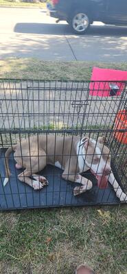 I want to sell my pitbull puppy because I can't care for him and my other dogs. He's calm and friend...