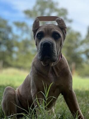 6 month old female French Mastiff needs a loving home. Loves to play good around children and people...