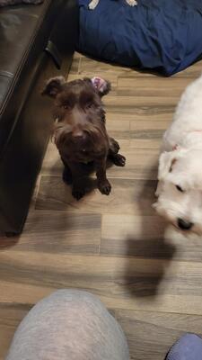 AKC miniature schnauzer is looking for her forever home. She is chocolate and adorable. So sweet and...