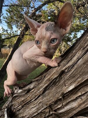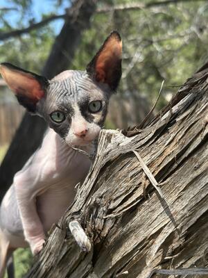 lowered ADOPTION FEE 1500 5 MONTHS Sphynx Female Calico. HCM Clear Parents