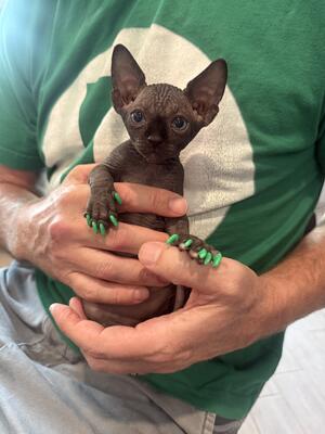 Three Sphynx Kittens born July 20, 2025. We have one black kitten left. Please contact via text at ...