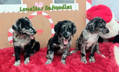 Two Merle boys and a girl. Great DaNoodles, (Great Dane x Royal Poodle) We have blacks.too LoneS...