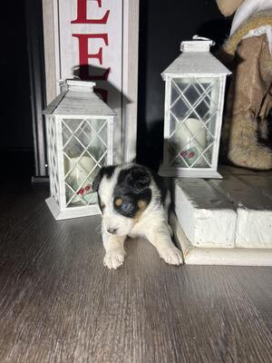 Australian shepherd puppies born November 28 4 females 2 males. Females are the ones with the bows. ...