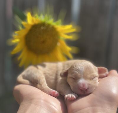 Female. Cream and white. Mini bernedoodle dad and mini labradoodle mom. Expected weight 20-30lbs....