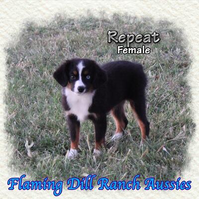 Flaming Dill Ranch Aussies Andie is a Small Mini Black Tri Female Brown Eyes Born February 2, 202...