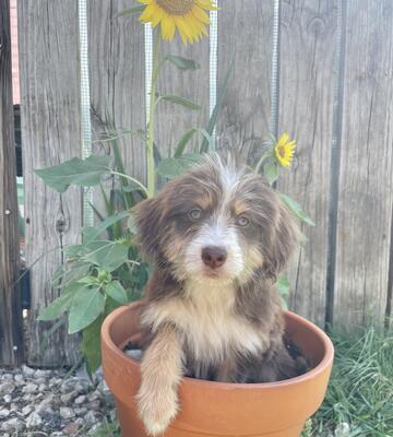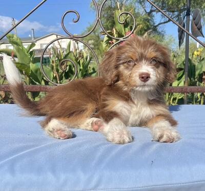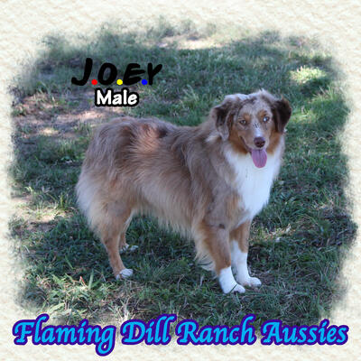 Flaming Dill Ranch Aussies Joey is a Mini Red Merle Male Sweet, Playful, & Outgoing Boy! Offering...