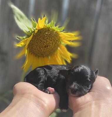 Female. Black with white markings. Mini bernedoodle dad and mini labradoodle mom. Expected weight...