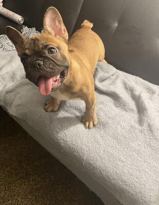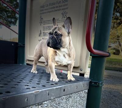 Frenchie pups carrying fluffy, blue & tan, testable chocolate Merle lamb chop grandkid, cowabunga &...