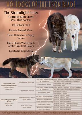 Wolfdogs of the Ebon Blade, located in Johnson County, TX. Genn and Syl are being paired for a 95%+ ...