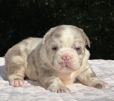 Fluffy Lilac Merle English Bulldog Female