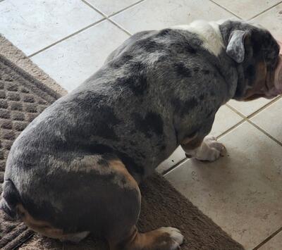Male stud English bulldog Tri Color Merle $750 firm Excellent temperament Great with kids Non-a...