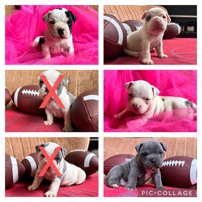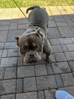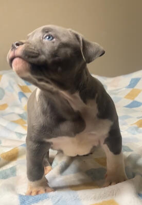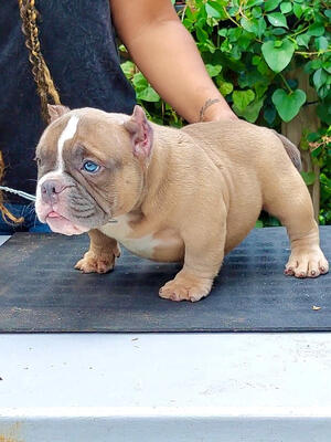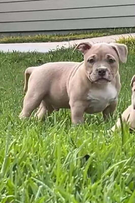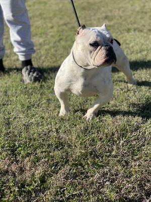 Female micro american bully thats clean all the way around from front to rear. Full tail clean feet ...