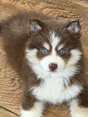 Beautiful brown/white blue eyes female puppy. Born 09/07/2025. Very playful. Pee pad trained. Ha...