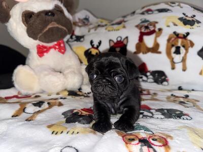 3 female pug puppies looking for their forever home will come with first round of shots and dewormer...