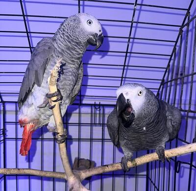Lovely pair of Congo Afican grey parrots