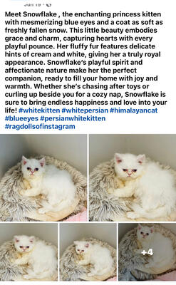 EMAIL RagdollPersians@gmail.com Meet Snowflake,she’s the enchanting princess kitten with mesmer...