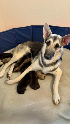 Rescued German Shepard gave birth to 8 very healthy puppies