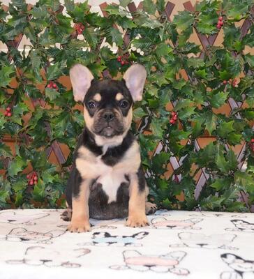 We have two 15 week old male and female Frenchie. Black and tan is a male. Big rope Merle is a f...