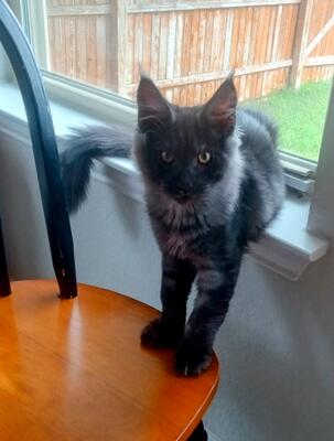 Black Smoke male Maine Coon kitten, 4 months old, registered, no breeding rights, shots, very cuddly...