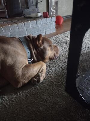 We are seeking a new home for our 5 year old American Bully. He is a very friendly dog, has a grea...