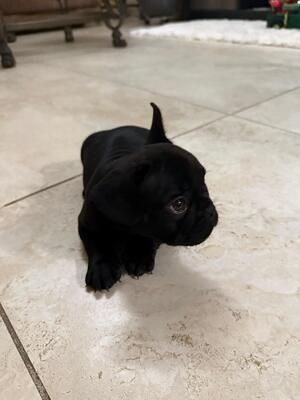 Black French bulldogs puppy, borned on November 21st, already has his 1st set of shots....