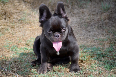Blue and Tan Fluffy Frenchie currently in heat as of 5/24/25. 2nd heat never tried for litter. 1 yea...