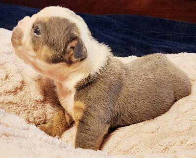 We currently have 4 English Bulldog puppies for sale. There are 3 Black Tri/ Seal puppies and 1 Blu...
