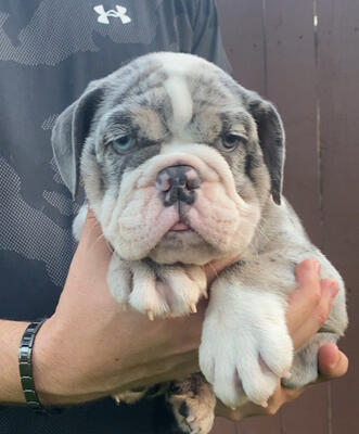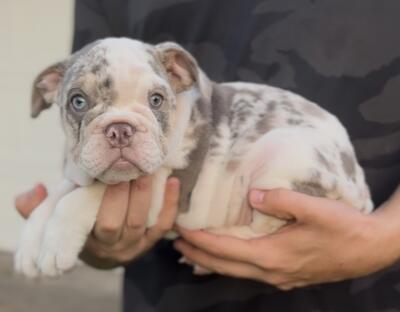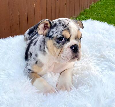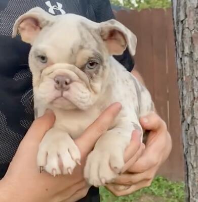 Meet Luna – our gorgeous 12-week-old Lilac Merle English Bulldog puppy! She is gentle playful a...