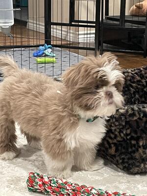 I have a 4 month old little male shih tzu he is lilac and white with lilac nose just beautiful a awe...