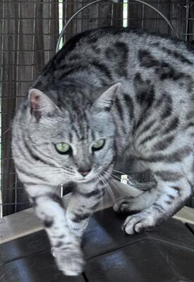 Syren is looking for her forever home. She is a silver female adult Bengal. Her background color is ...