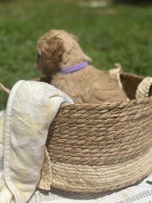 We have a sweet F1b Moyen goldendoodle she is still pretty small born 9-19-2024! SHE IS NOT HOUSE T...