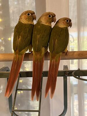 Long-time breeders with 20-week old handfed, hand-raised, DNAd female Pineapple Conure. She is very ...