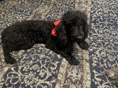 I have a miniature poodle, black male, about a year oldold he has all puppy shots super sweet and lo...