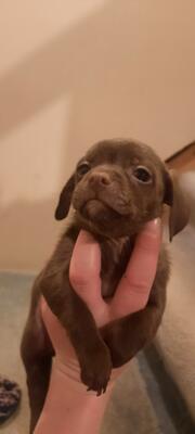 He was the ONLY Male! Dark brown with light brown and white accents. Ready Now! Birth/whelp date10...
