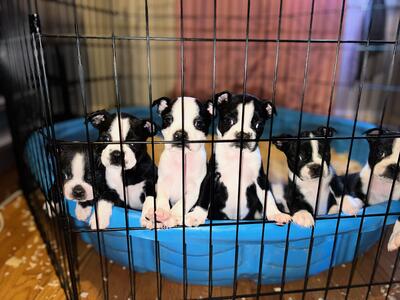 Pure Boston Terriers (registered) born on 7/12/24. Mom and dad are in the same house 2boys and 3g...