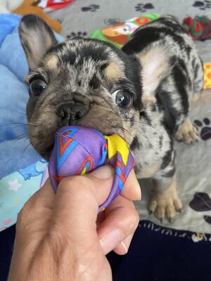 Frenchie pups seeking new home. Tri Merle’s great dna one boy and girl. One platinum Merle boy....
