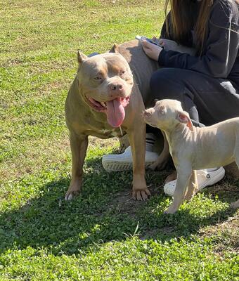Two females born May15th. Mom and Dad also pictured. They are standard bullies with the weight of XL...