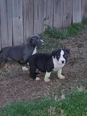 3 boys 4 girls blue and black and white American Bullys. Paperwork and shots will be provided , ear...