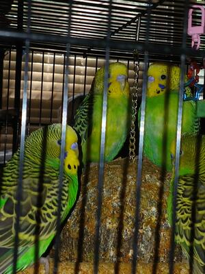 Parakeets for sale. Mom is a fancy white, blue, and yellow and dad is a normal green, yellow and bl...