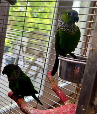 I HAVE 4 BLACK CAPPED CONURE AVAILABLE ALL 4 OF THEM ARE ABOUT 3-4 MONTHS OLD EAT ON THERE OWN TAME ...