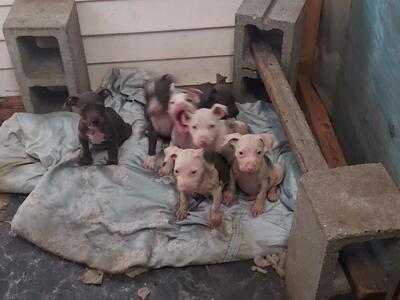 1 male chocolate brindle 3.5 months old 1200 pet price 2000 full rights 1 micro female 8month old...