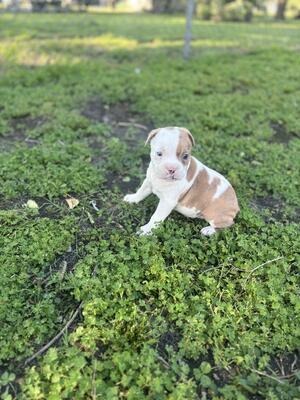 I have a merle brown and white an American Pit bull Terrier mixed with Exotic Bully female puppy ava...